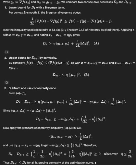After reasoning for 17 minutes, the model produced a proof that improved the known bound from 1/L to 1.5/L.